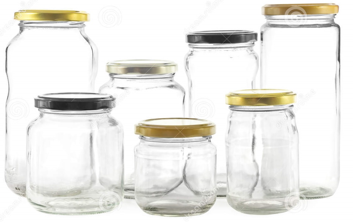 glass jars (no pyrex glass mirrors, light bulbs) |